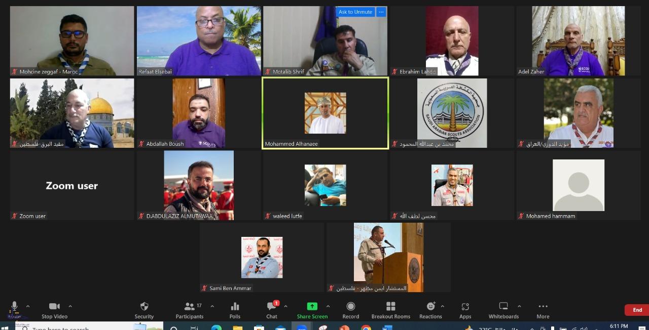 عقد الإقليم الكشفي العربي، أمس (عبر الاتصال المرئي) الاجتماع العشرون لمفوضي التدريب وتنمية القيادات بالجمعيات الكشفية العربية، بحضور نائب المدير الإقليمي مدير الطرق التربوية رفعت السباعي، ورئيس اللجنة العربية الفرعية الكشفية لتنمية القيادات وتشجيع التطوع محمد الهنائي.