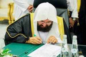 وقد جرى التوقيع على محاضر الإستلام والتسليم بين الرئيس العام لشؤون المسجد الحرام والمسجد النبوي، وكبير سدنة بيت الله الحرام، خلال الحفل الذي أقامته الرئاسة بالمجمع، تمهيداً لاستبدال ثوب الكعبة المشرفة غرة محرم ١٤٤٥هـ .