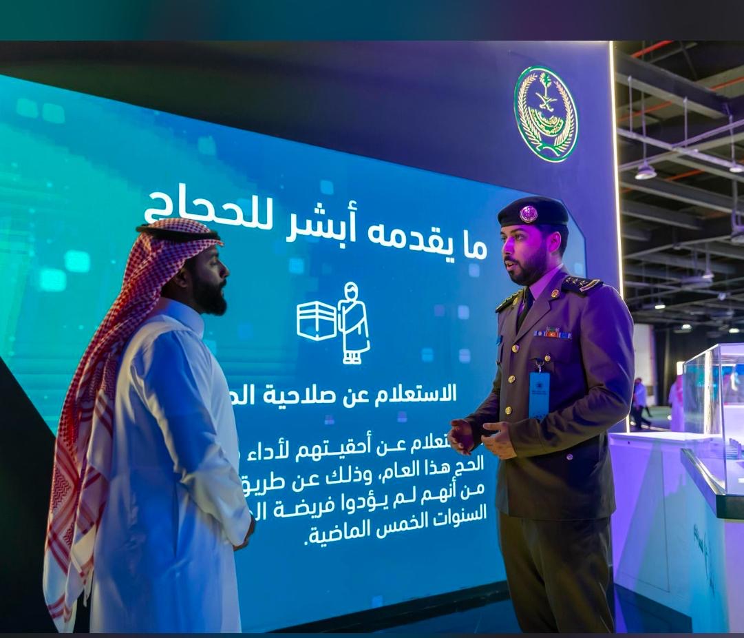 وتعرّف “أبشر” لزوار جناح وزارة الداخليّة ، الخدمات المقدمة لضيوف الرحمن منذ وصولهم إلى المملكة كطباعة تصريح الحج والاستعلام عن أحقيّة أداء مناسك الحج، واستعراض الهويّة الرقميّة للزوار.