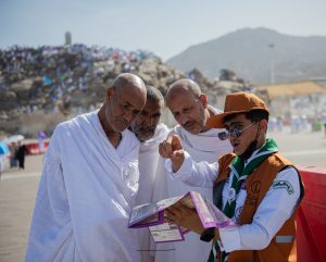 هم فِتية الكشافة من معسكرات الخدمة العامة التي تقيمها جمعية الكشافة العربية السعودية، ممن نذروا يومهم لخدمة ضيوف الرحمن، وغرسوا أعظم المعاني الإنسانية في أرض الطهر.