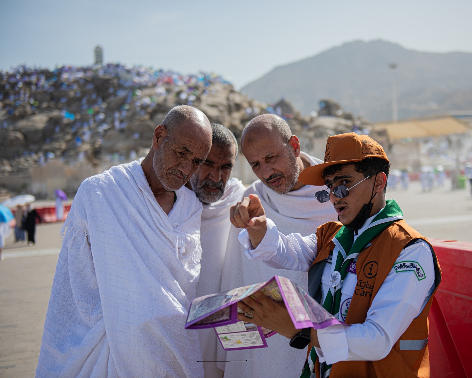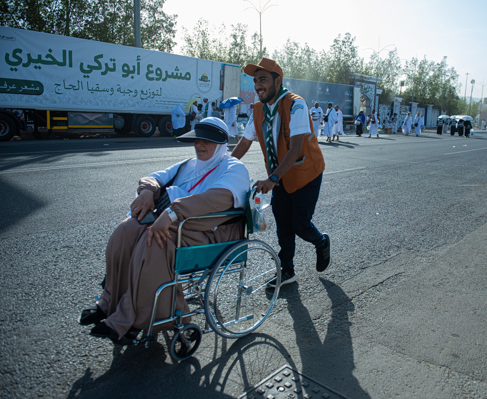 في أوج الظهيرة على صعيد عرفات، وتحت شمس لا ترحم، كان مشهد الرحمة يمشي على قدمين… يرتدي قبعة كشفية، ويحمل مظلة تظلل حاجاً مسناً، أو يسند ذراع حاج أنهكه التعب، أو يدفع عربة تحمل أماً مُسنة تلتمع دموعها امتناناً.