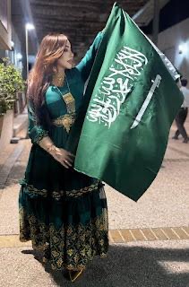 نشرت الفنانة رشا السيد في مواقع التواصل الاجتماعي الإنستغرام مجموعة من صور الرائعة باحتفالها باليوم الوطني السعودي الخامس والتسعين، حيث خضعت لجلسة تصوير خاصة بهذه المناسبة ظهرت خلالها مرتدية فستانًا أخضر اللون وحاملة علم المملكة العربية السعودية، في إطلالة مميزة تجسّد روح الانتماء والاعتزاز.
