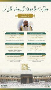 وسيتولى فضيلة الشيخ الأستاذ الدكتور عبدالله بن عواد الجهني إمامة المصلين وإلقاء خطبة الجمعة في المسجد الحرام.